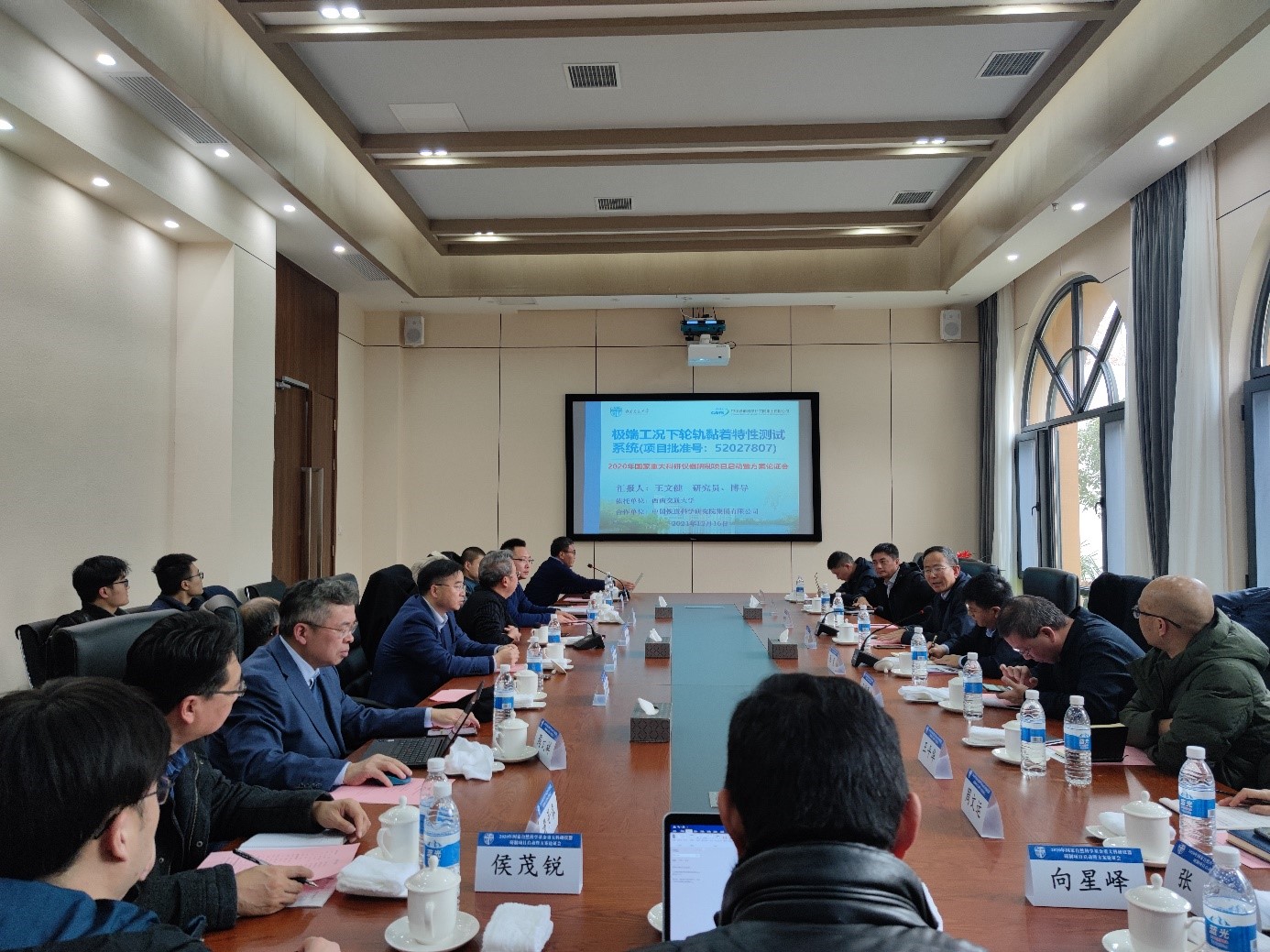 2021年12月16日,由公司主持承担的国家自然科学基金重大科研仪器研制项目启动暨方案论证会在388vip太阳集团镜湖宾馆召开。出席本次会议的专家和项目成员有:安徽省金属学会苏世怀会长、攀钢集团有限公司杨秀亮副总经理、攀钢集团有限公司陈勇高级技术顾问、重庆永进重型机械成套设备有限责任公司沈涛总工程师、中车资阳机车有限公司王平华主任、388vip太阳集团王俊勇教授、388vip太阳集团牵引动力国家重点实验室陈建政研究员;388vip太阳集团副董事长、项目负责人周仲荣教授、388vip太阳集团钱林茂经理、科学技术发展研究院马霖副经理,项目组成员金学松、周文祥、王文健、赵鑫、黄景春、范志勇、张进、向星峄;中国铁道科学研究院集团有限公司侯茂锐副研究员、重庆苏试四达试验设备有限公司周文运经理。