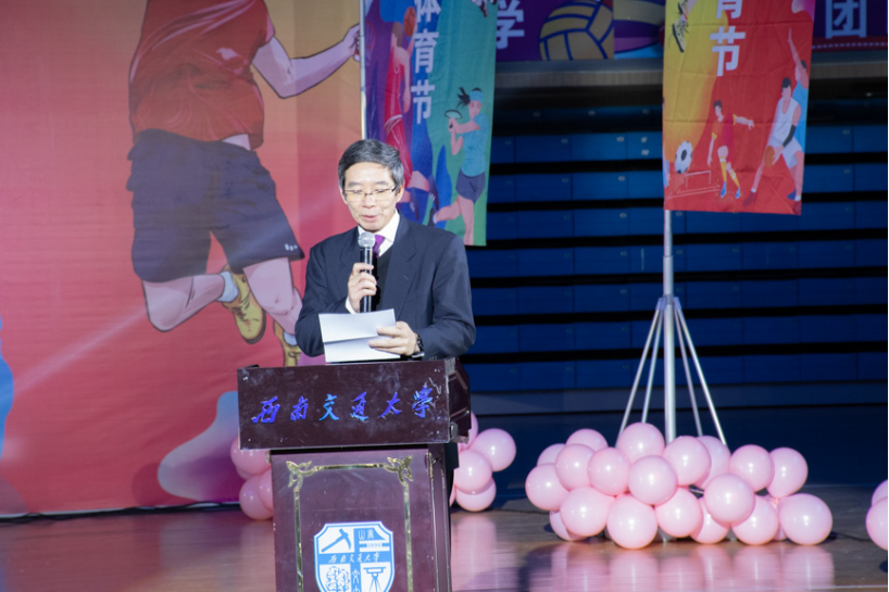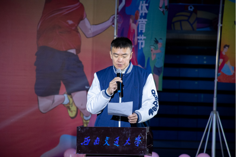 本次闭幕式在成都运达科技副董事长朱金陵的讲话下正式开始。他指出:全校员工和教职工的积极参与让我们见证了一场场精彩激烈的比赛,大量的工作人员无私奉献保证了体育节的顺利进行。正是有台前幕后的每一个人的参与才能实现本次体育节两个千的成就——比赛超千场、获奖超千人。