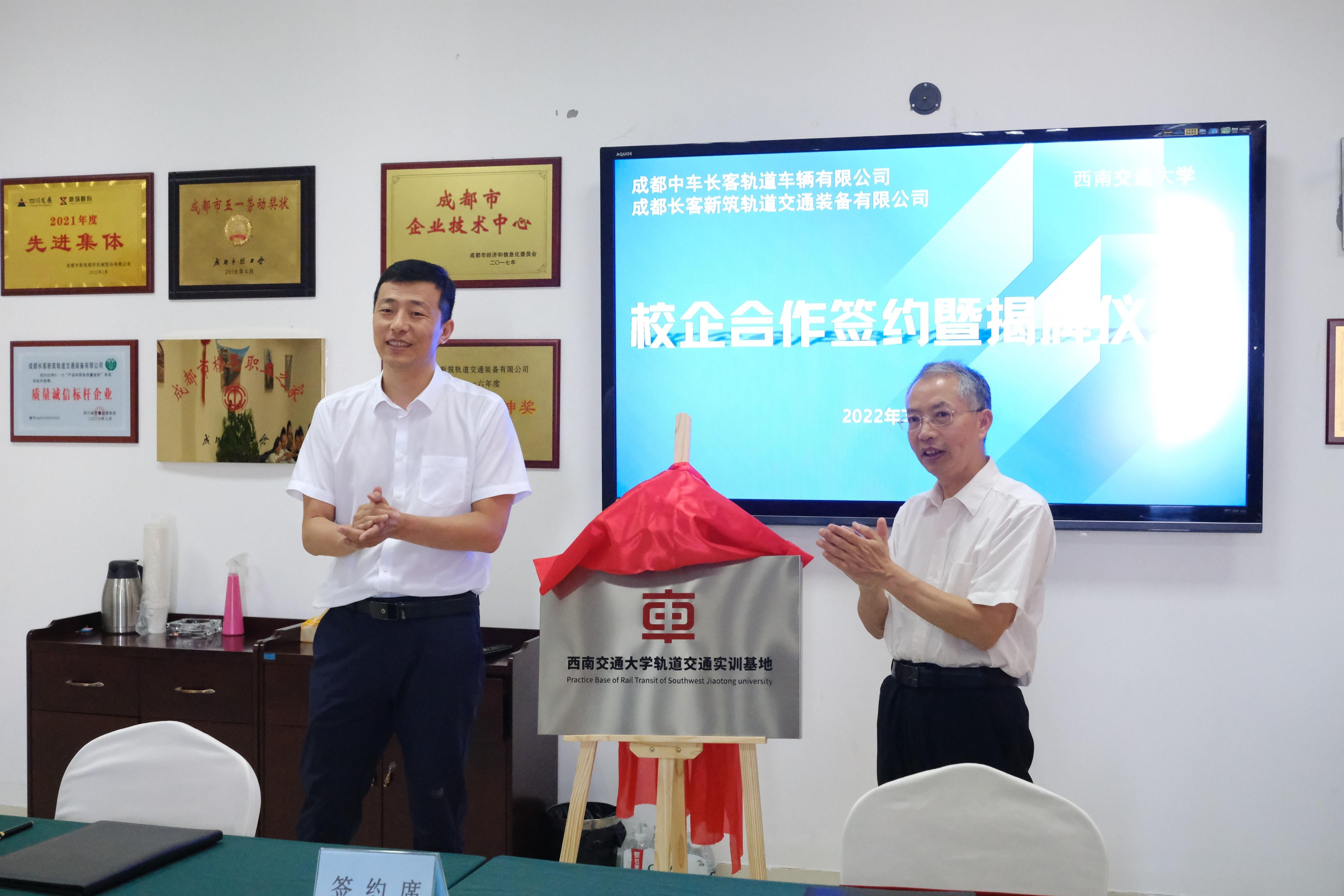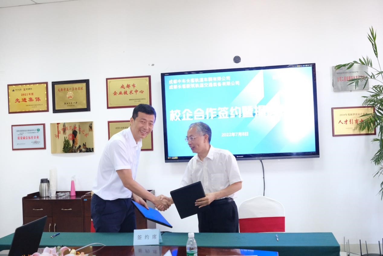2022年7月8日上午,388vip太阳集团与成都中车长客轨道车辆有限公司、成都长客新筑轨道交通装备有限公司校企合作协议签约暨轨道交通实训基地揭牌仪式顺利举行。