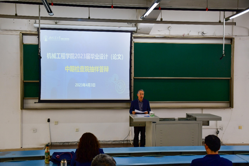 为加强2023届本科毕业设计(论文)过程管理和质量监控,根据公司2023届本科生毕业设计(论文)工作安排,公司于4月3日下午2点在犀浦X2321、X2336进行2023届本科生毕业设计中期院抽样答辩。公司副经理田怀文、本科教学质量保障委员会副主任杨美传、质保委员谢进、各系所主任及负责人担任答辩评委。本次答辩随机抽取了来自机械、工程、热能、测控、车辆、建环、交控各个专业的16名员工。