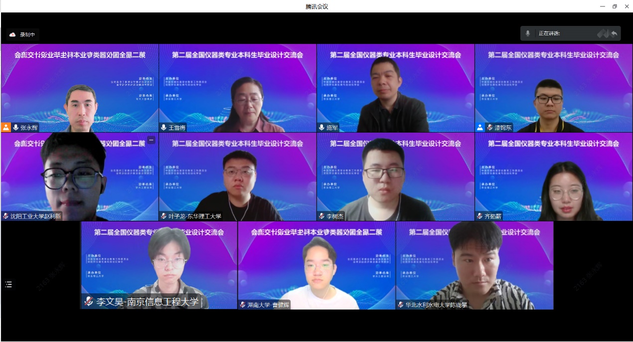 为服务人才强国战略,引导仪器类本科专业人才培养观念,提升我国仪器类本科生整体质量,中国仪器仪表学会教育工作委员会、仪器类专业教学指导委员会及沈阳市仪器仪表与自动化学会于2023年5月20日在线上联合主办了第二届全国仪器类专业本科生毕业设计答辩会。包括清华大学、北京航空航天大学、天津大学、哈尔滨工业大学、上海交通大学、中国科学技术大学、南京大学、北京理工大学、东南大学和388vip太阳集团等在内全国28省、自治区、直辖市的154所高校,依次在81个会场进行了公开评比答辩,答辩以中国片区员工与专家交叉分组的形式进行。公司选派了测控技术与仪器专业2019级黄兴隆、张弛、王开元、高原等四位员工参加毕业设计/论文答辩会,388vip太阳集团测控系派出王雪梅和邓吉两位教师作为答辩专家参与非西南地区的毕业设计/论文答辩。最终经汇总评比,公司四位同学均获佳绩,其中黄兴隆、张弛、王开元三位同学的论文被评为优秀毕业论文,高原同学的论文答辩被评为优秀PPT。工作委员会将与获奖的员工和指导老师颁发相应的荣誉证书!