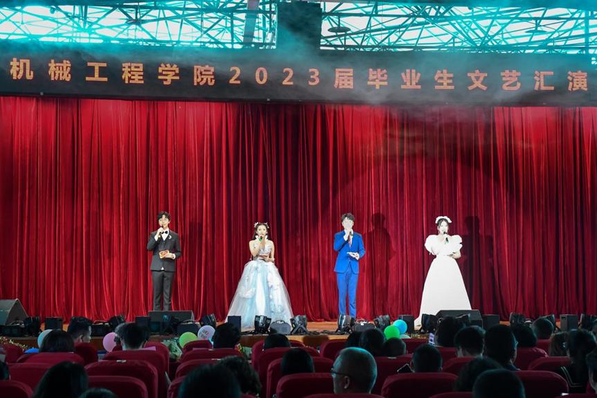 在毕业文艺汇演环节,机械学子各展神通,尽显风采。优雅的民乐悠扬动听,幽默的相声引人发笑,激情的乐队表演让人高亢,婉转的钢琴独奏令人神伤...机械人在这片舞台,尽情地展现自我,引发了一阵又一阵的欢呼,充分展现了机械人多才多艺的风采。