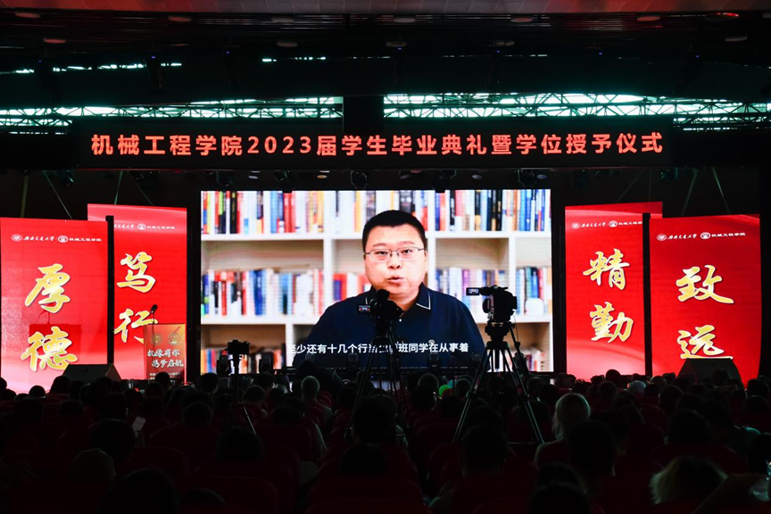 大屏上开始播放公司老师们的祝福视频。一句简单的“毕业快乐,前程似锦”里是老师对于毕业学子未来的无限期盼,一句“老师再见!”满含着毕业学子对于母校与恩师的念念不舍。机械少年强则中国制造强,希望毕业的机械学子能够不负老师的殷切希望,勇往直前,为中华民族的伟大复兴不断奋斗。