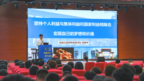 结合新生第一课,公司党委书记袁艳平深入新生年级,袁艳平书记以“坚持个人利益与集体利益和国家利益相结合,实现自己的梦想与价值”为题,教育引导广老员工牢记习近平总书记对青年员工的殷殷嘱托,为同学们带来了精彩的开学第一课。袁书记以陈能宽员工,沈志云员工,翟婉明教授,李晓玉学长等知名员工、著名教师和优秀员工为例,告诫同学们要将个人命运同国家命运、民族命运和时代命运相结合。袁书记提到,制造业是立国之本,机械强则国家强,每一位机械学子都应该认识到自己的责任与担当。最后,袁书记勉励所有新生认真学习,积极前进。