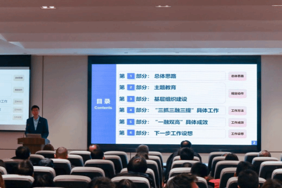 2023年12月28日下午,公司在机械馆J2530召开全院教职工大会,公司全体教职工参加了本次大会。大会听取和审议了公司党政领导班子2023年度工作报告、公司2023年度财务报告,进行了“教书育人奉献奖”颁奖仪式和新进教职工入职仪式,以及公司党建、班子暨领导干部2023年度述职测评。大会第一阶段由公司党委副书记沙晓雪主持,第二阶段由公司党委书记袁艳平主持。