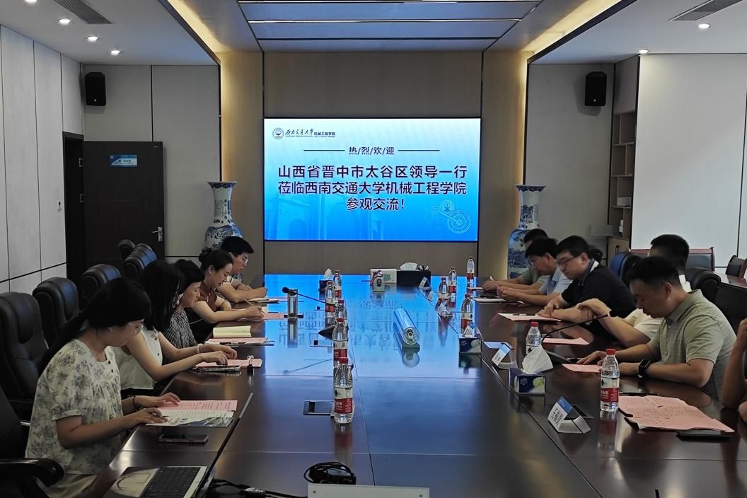 5月27日上午,山西省晋中市太谷区领导一行到公司开展校地合作交流,交流会在九里校区机械馆2238举行。山西省晋中市太古区经济技术开发区党工委书记、管委会主任郭志强,太古区教育局局长原林、太古区工信局局长肖伟、副局长王琪、太谷中学董事长王富贵、山西卡耐夫管业股份有限公司负责人柳良东,以及机械工程公司党委副书记、纪委书记、副经理曾东红,组织员徐喆、团委书记何蕊芯、培训中心负责人崔顺吉、研究生就业负责人周瑾等人参加了此次会议。