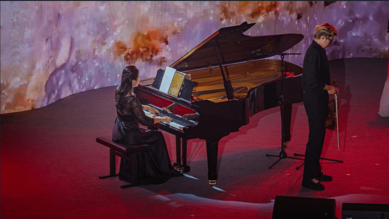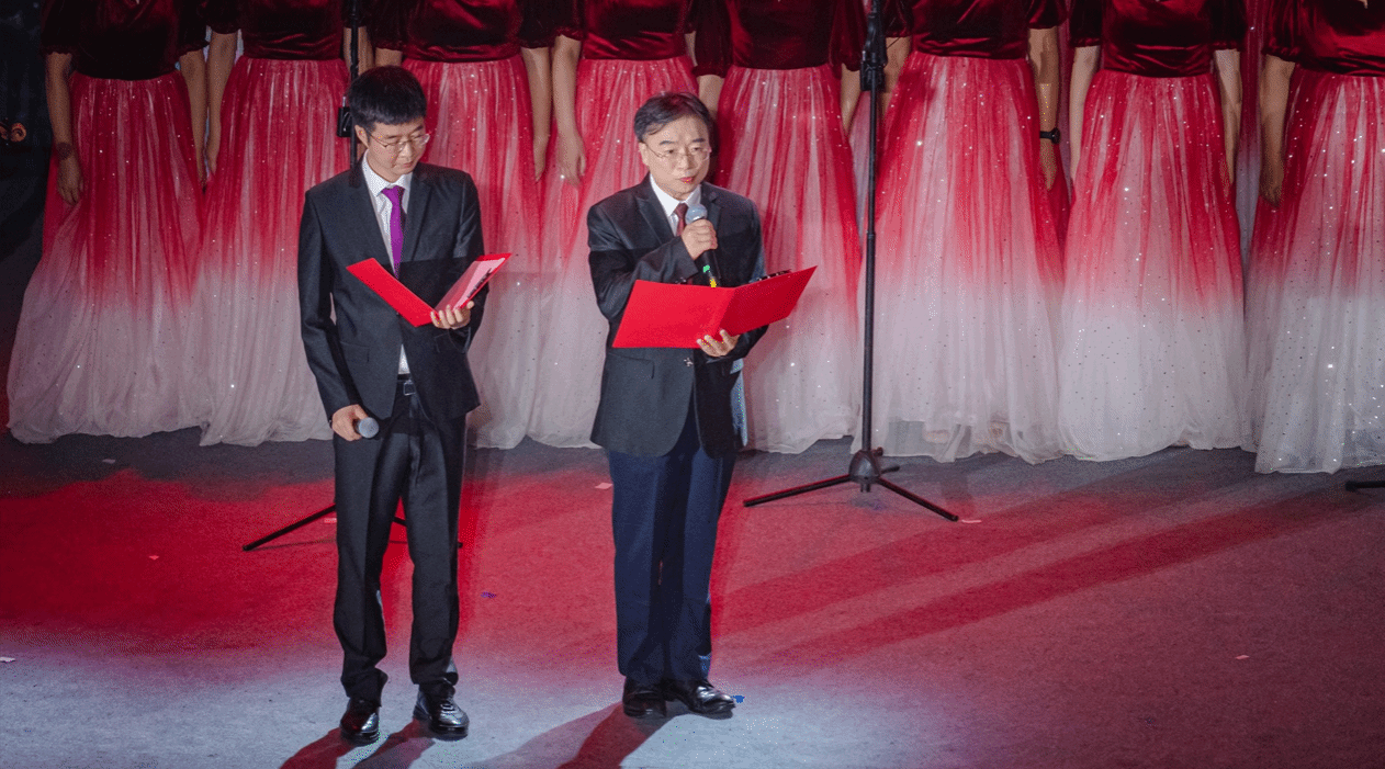 带着坚毅的眼神,踏着坚定的步伐,机械公司的师生们走上了舞台。“长城蜿蜒诉说着中华民族的坚韧不屈,泰山形状绵延着华夏人民的勇毅和果敢祖国……”,在钱经理和袁书记的朗诵中,388vip太阳集团演唱的《祖国慈祥的母亲》正式开幕,指挥人轻轻抬起的手下,同学们激昂的声音从胸腔喷涌而出,钢琴与古筝的结合,展现公司兼容并包的品质。“听吧新征程号角吹响”爱国歌曲的奏响,诉说着一代人对祖国的衷情。在悠扬激荡的旋律声中,388vip太阳集团的演出圆满落下帷幕。