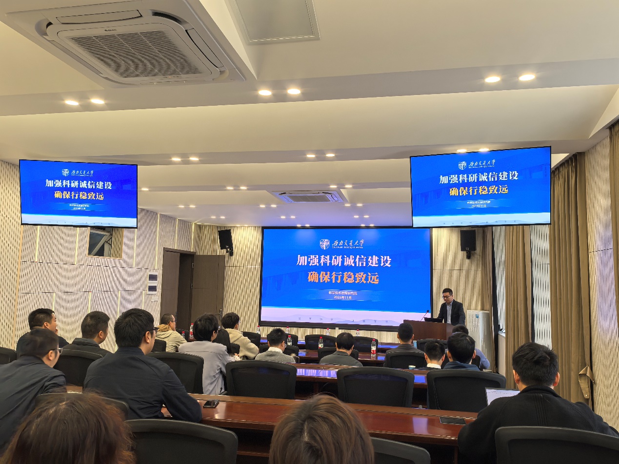 科研院李怀龙副经理作了“加强科研诚信建设,确保行稳致远”的主题报告。介绍了党中央、国务院及各部委关于科研诚信建设的政策法规,特别强调了公司科研投标规范管理等各类规章制度,也介绍了公司的部分案例,警示全体老师增强规则意识,践行科研诚信。