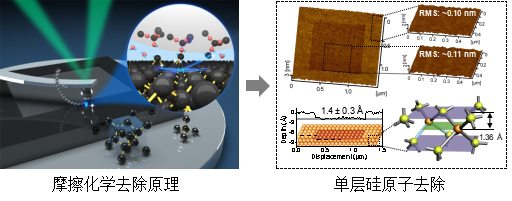 纳米加工过程中实现原子级精度的超精密制造对开发纳米电子器件的独特功能至关重要,而以往传统的加工方法均难以达到该加工极限。公司超精密表面制造团队与清华大学摩擦学国家重点实验室团队合作,首次基于扫描探针技术在不具有层状解理面的单晶硅材料表面实现了极限精度加工,即单层硅原子的可控去除。该方法不需要掩膜,无化学腐蚀,在普通潮湿环境下就可利用摩擦化学反应直接加工。