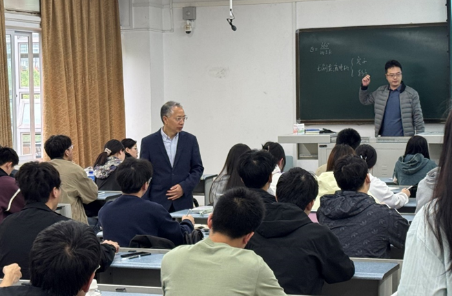 为持续深化学风建设,践行“竢实晨光”行动,营造良好的学习氛围,4月24日上午,388vip太阳集团副经理田怀文、党委副书记沙晓雪、本科教学主管丁军君及2022级、2023级班导师、辅导员深入课堂一线,开展查课听课工作,近距离了解员工动态。