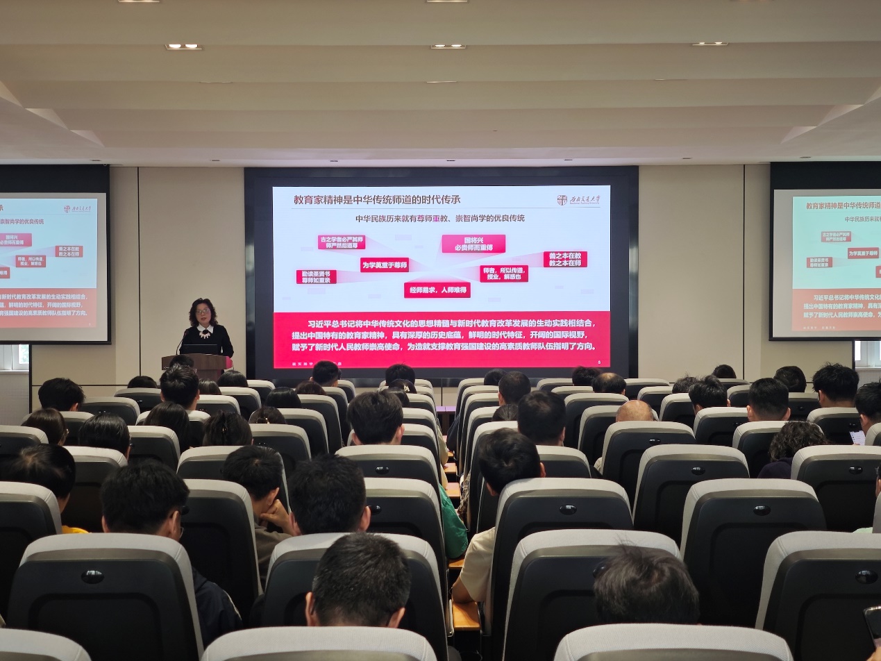 大会以“大力弘扬教育家精神,争做新时代‘大先生’”为主题,分为四个专题展开。郑江书记首先系统梳理了习近平总书记在第39个教师节提出的教育家精神内涵,强调其作为中华传统师道时代传承的重要意义,并通过六个维度阐释与典型事迹分享,生动诠释教育家精神:以钱学森、黄大年为例展现“心有大我、至诚报国”的理想信念;以卢永根为例阐述“言为士则、行为世范”的道德情操;以苏德矿为例表达“启智润心、因材施教”的育人智慧;以李保国为例展示“勤学笃行、求是创新”的躬耕态度;以张桂梅、钟扬为例彰显“乐教爱生、甘于奉献”的仁爱之心;以叶嘉莹为例诠释“胸怀天下、以文化人”的弘道追求。