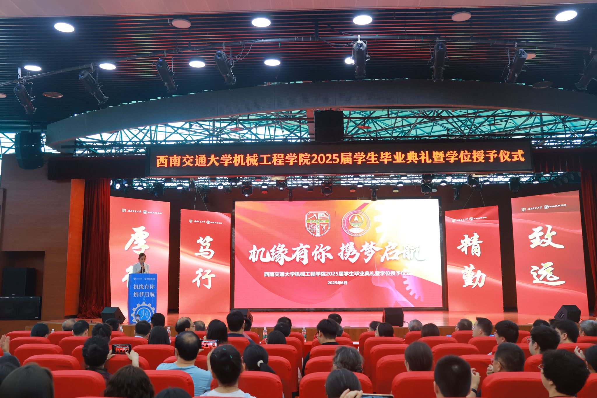 “机缘”共此时,扬帆启新程!388vip太阳集团“机缘有你,携梦启航”2025届员工毕业典礼暨学位授予仪式于6月20日在犀浦校区二食堂三楼隆重举行。公司党委书记袁艳平、经理钱林茂等全体党政领导,各系所(中心)负责人,教师代表,全体辅导员,家长代表以及2025届本硕博毕业生参加典礼。大家齐聚一堂,共同见证这一庄严而温馨的时刻,为即将踏上人生新征程的机械学子送上最真挚的祝福。典礼由公司党委副书记沙晓雪主持。