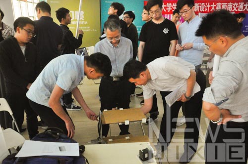 同时,现场陈列着他们做的实物或比例模型,吸引了大量的目光,评委老师们更是目不转睛。值得一提的是,此次比赛中大一新生也有积极参与,这说明公司新生对科技竞赛的热情正在不断提升。