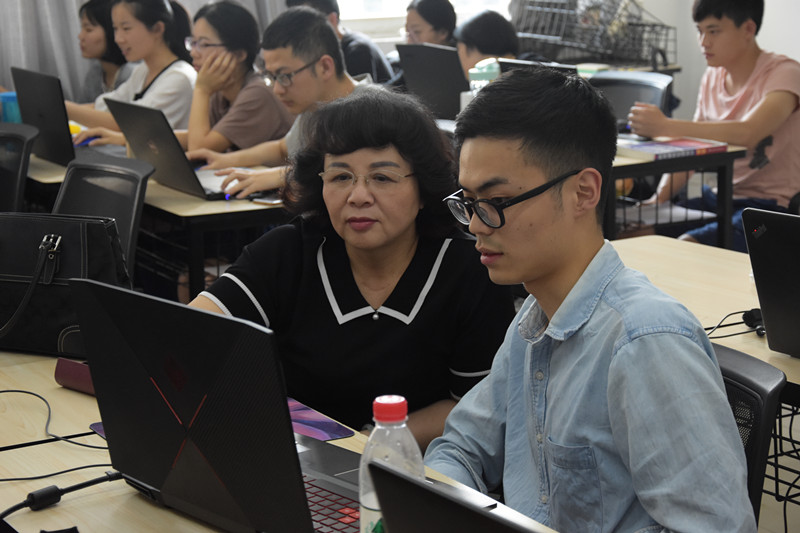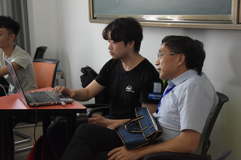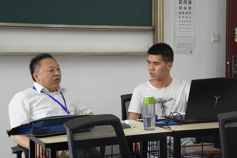 专家山东建筑大学刁乃仁教授与授课教师交谈