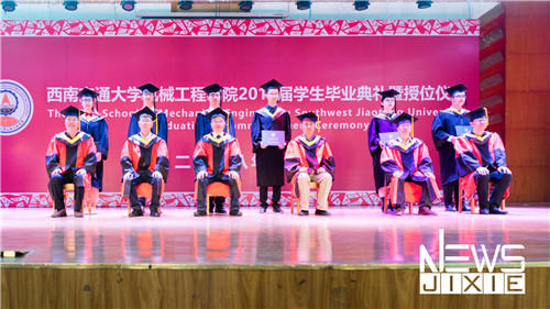 机械公司教授委员会委员钱林茂教授、程文明教授、董大伟教授、高宏力教授、田怀文教授、李柏林教授为毕业生代表授予学位并颁发证书。在授位仪式进行过程中,老师们与毕业生代表亲切攀谈并合影留念,毕业生代表也送上鲜花表达对老师教导之恩的感谢,毕业生家长也一同上台合影留念。