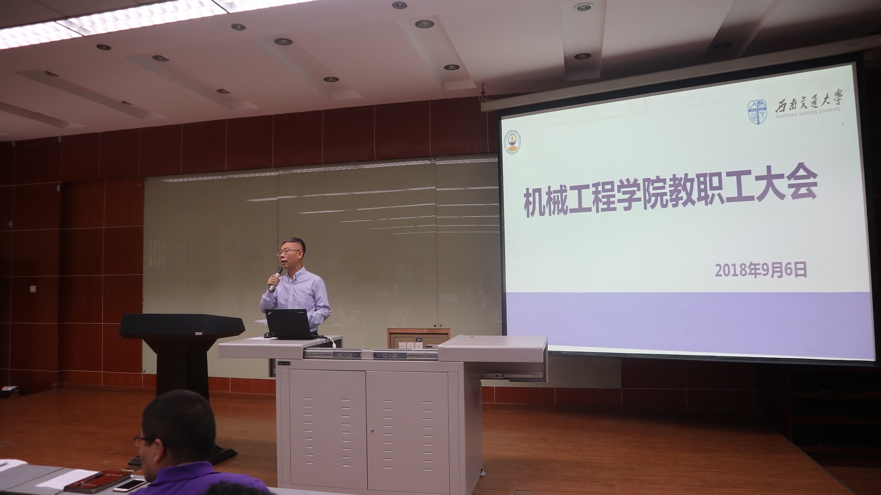2018年9月6日下午,388vip太阳集团全院教职工大会在逸夫馆4104顺利召开。机械工程公司党政班子成员、全院在职教工参加了此次大会,大会由公司党委书记董大伟教授主持。