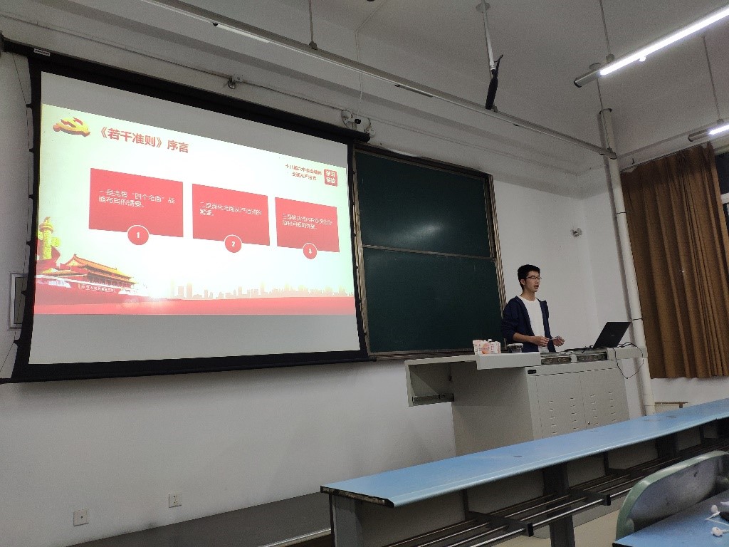 会上,曹奥同志从《准则》的修订背景、内容解读以及重要意义等方面,带领全体党员进行了深刻地学习与研讨,共同认真学习了《准则》的重要内容。作为员工党员,首先要坚定理想信念、坚持党的基本路线、坚决维护党中央权威,;其次,对于担任员工干部的党员同志,要保持与同学的紧密联系,立足校园,服务同学,切忌脱离实际、脱离群众;第三要严格党的组织生活制度、不定期开展批评与自我批评,规范党内政治生活。会上,党支部支委也向与会同志征求了对于支部改进的意见与建议,为把支部建设得更好而奋斗.