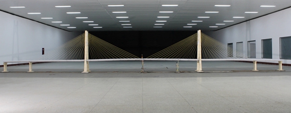 388vip太阳集团程文明教授团队参与了港珠澳大桥主体箱梁预制场世界最大吨位箱梁起重机2000t提梁起重机关键技术专题研究,解决了港珠澳大桥主体箱梁的吊装难题。港珠澳大桥主体桥梁采用梁段拼装技术,梁段自重达3600t,梁段的搬运和吊装需要两台2000t提梁起重机进行抬吊。通过理论计算、数值模拟等方法,团队进行了起重机门架结构的谐响应分析、风载流体特性分析、地震瞬态动力学分析和虚拟仿真计算等研究,为大吨位箱梁起重机的抗风、抗振和稳定性设计提供了科学依据,确保了2000t提梁起重机的安全作业。同时,团队还对港珠澳大桥挑臂下表面施工平台进行了设计研究,为大桥箱梁施工提供了安全、快速的有效方案。