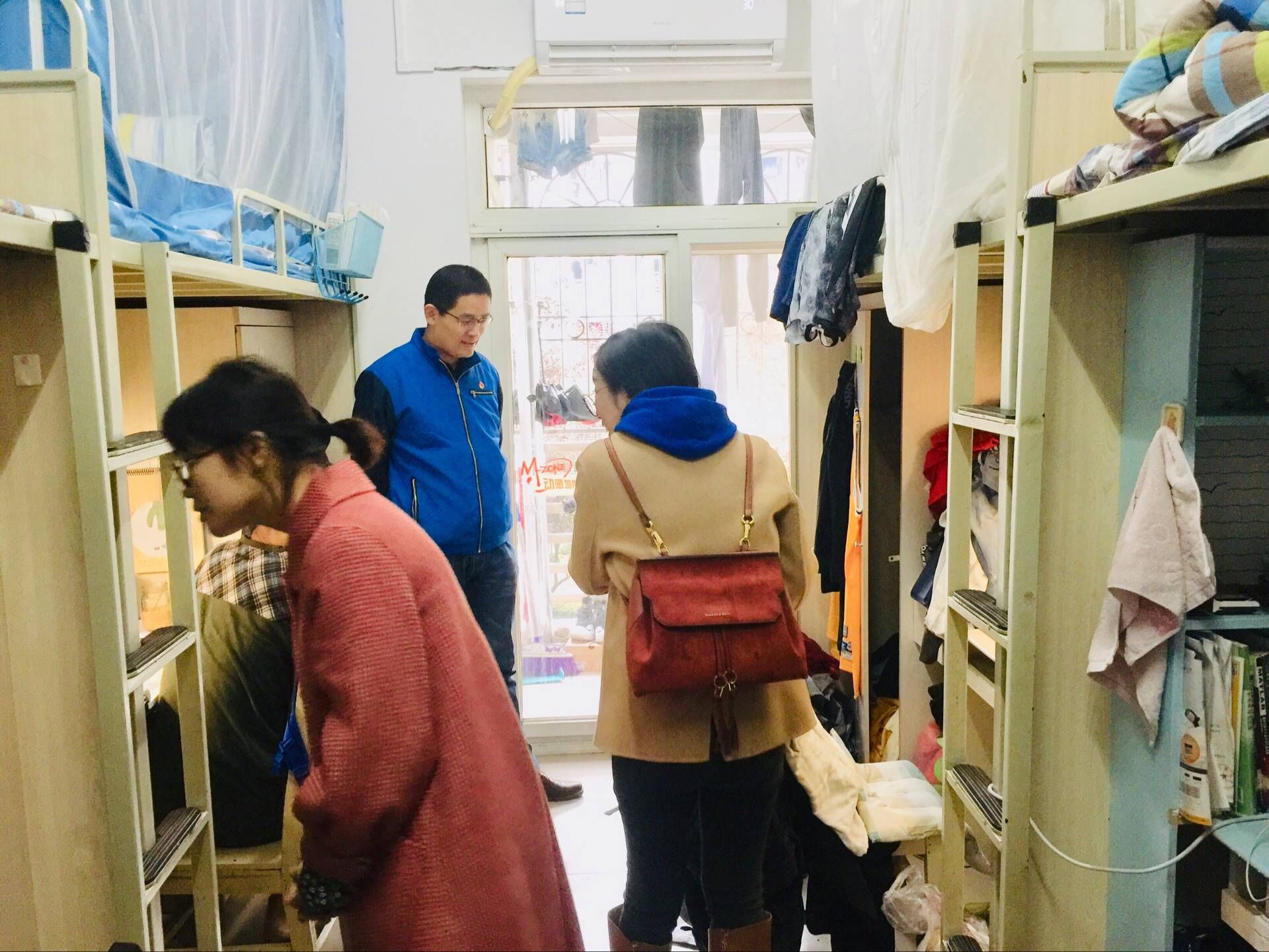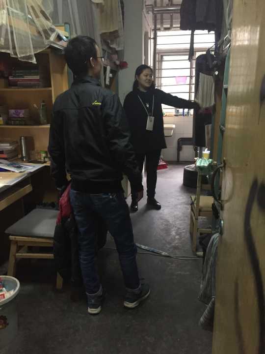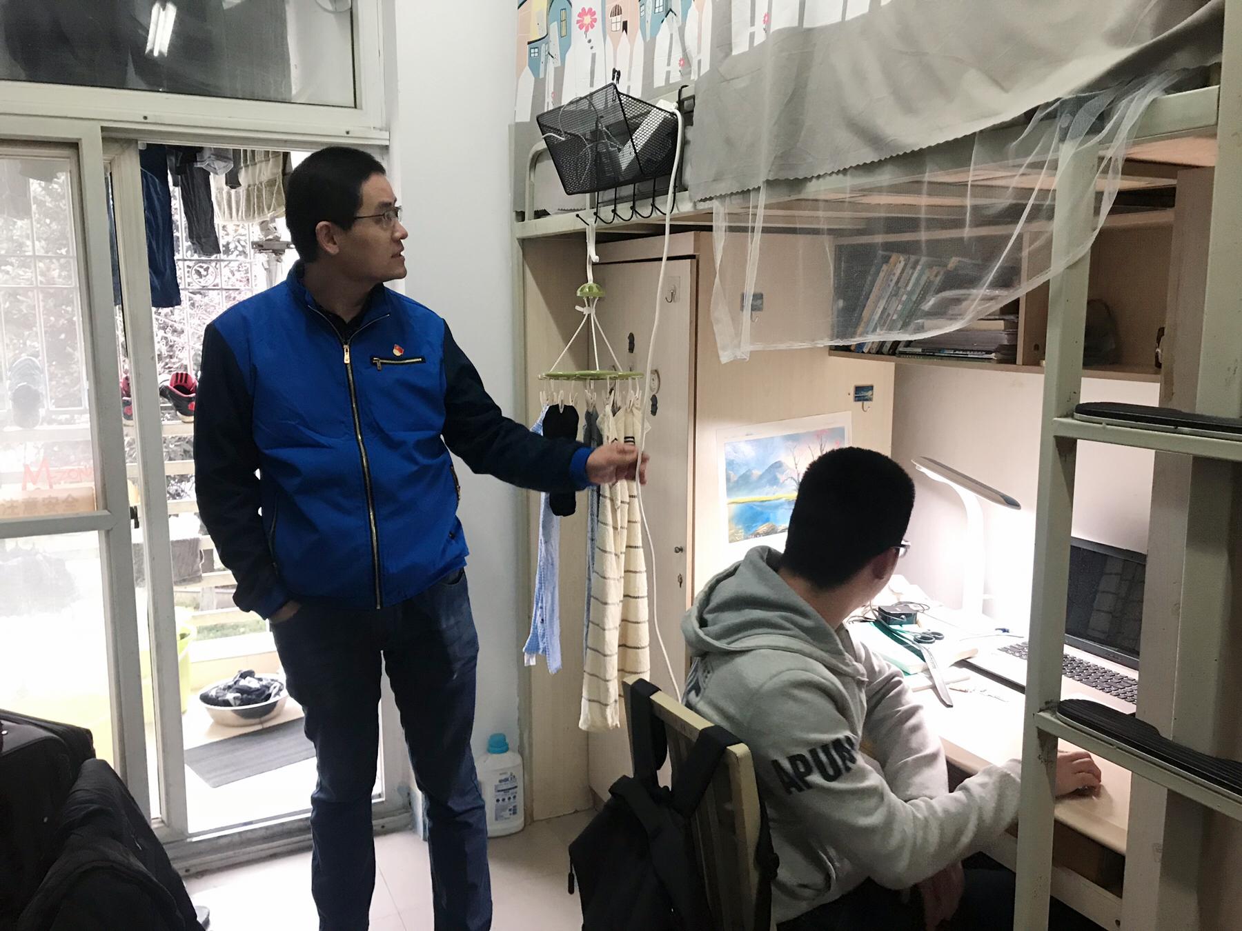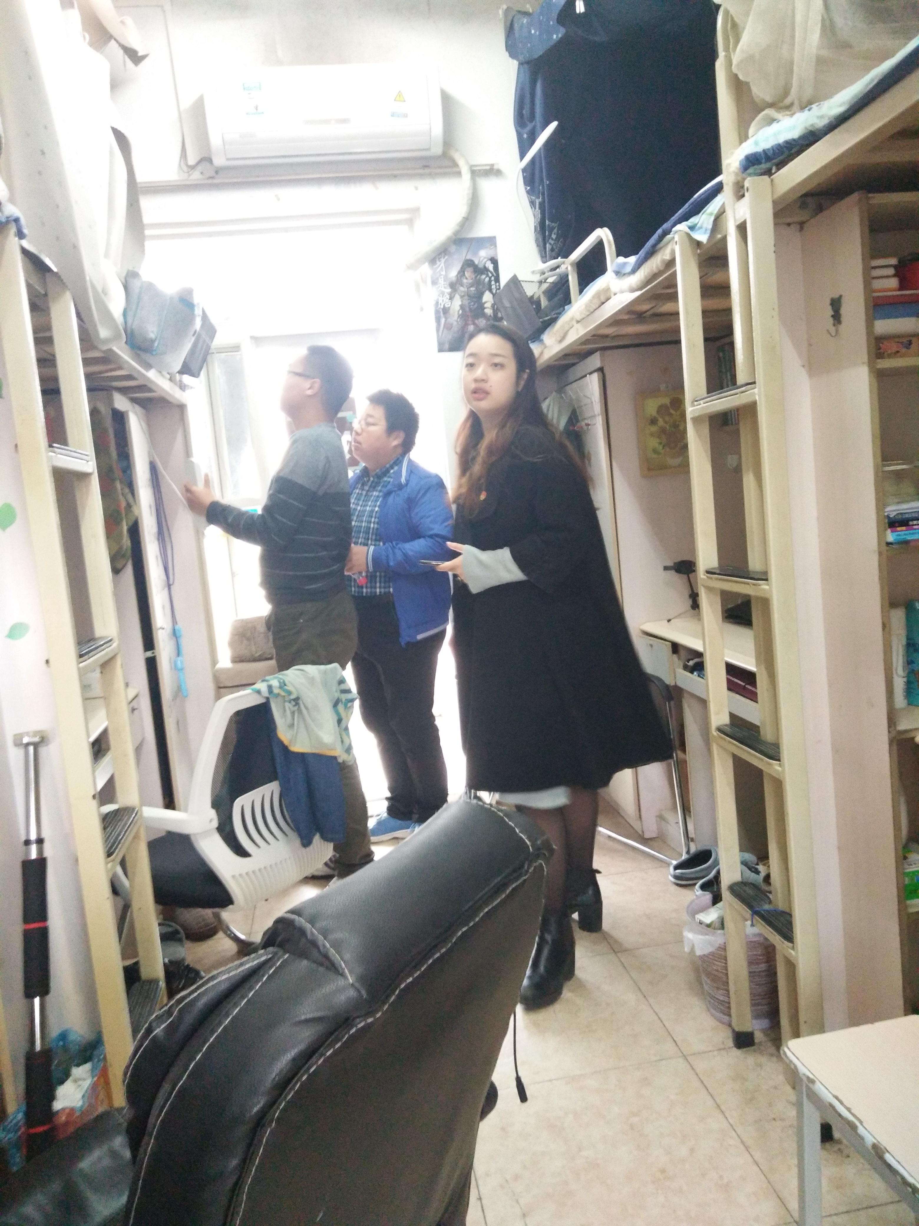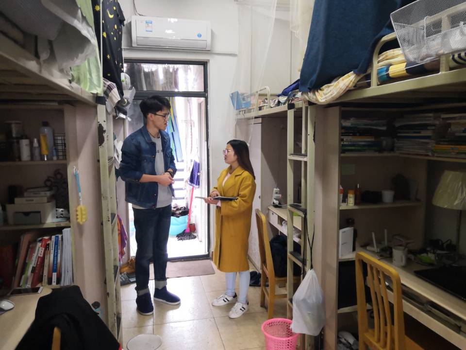 经检查,宿舍整体情况良好,无违章电器,部分寝室卫生情况好,物品堆放整齐。但部分寝室由于物品较多,堆放杂乱,部分寝室存在电线缠绕在床头、电线杂乱堆放在书桌、插头长期与插线板连通、寝室存放大量纸箱等情况。对于存在安全隐患的寝室,辅导员对员工进行了指出,并指导员工立刻整改,将安全隐患消灭在萌芽状态。