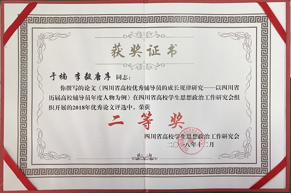 公司于楠、李毅、唐序老师获四川省高校员工思想政治工作研究会2018年度优秀论文评选二等奖