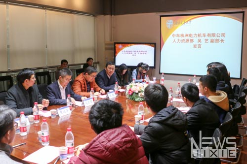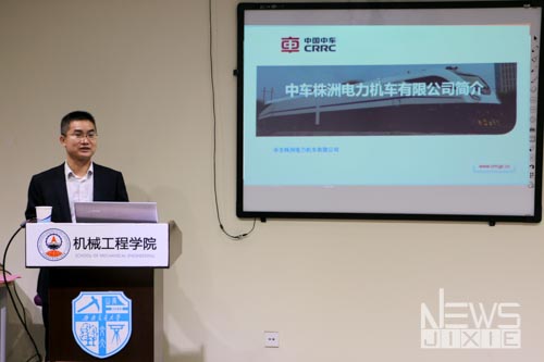 报告的开始,毛业军副总监在播放了关于中车中车株机的宣传片之后,通过PPT展示了中车株机在有关领域的历史和突出贡献,并且对当代老员工提出了“应该做什么”的指向性意见。在最后的提问环节,同学们踊跃提出关于机械专业就业方向、交通运输装备未来的发展、中车株机技术上的优势等问题,毛业军副总监热情回答同学们提出的问题并提出了许多具有指导性的思考。