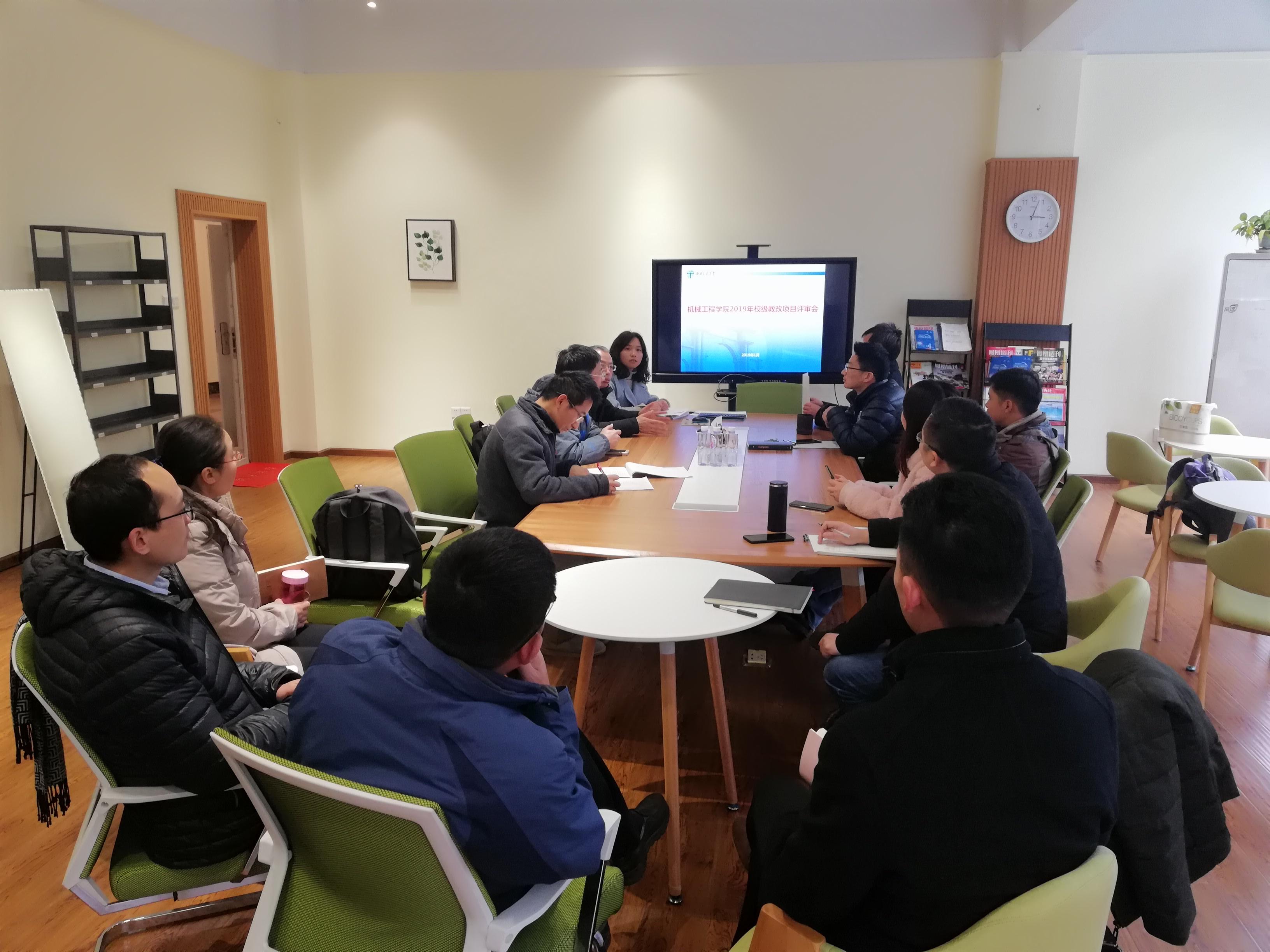 2019年1月10日下午,388vip太阳集团2019年度校级本科公司产品研究与改革项目评审会在九里2253会议室顺利举行。公司副经理田怀文、经理助理张则强、质保委副主任杨美传、教工委副主任罗大兵、教工委副主任吴晓、教工委委员、教师代表共计15名评审专家参加了评审会。