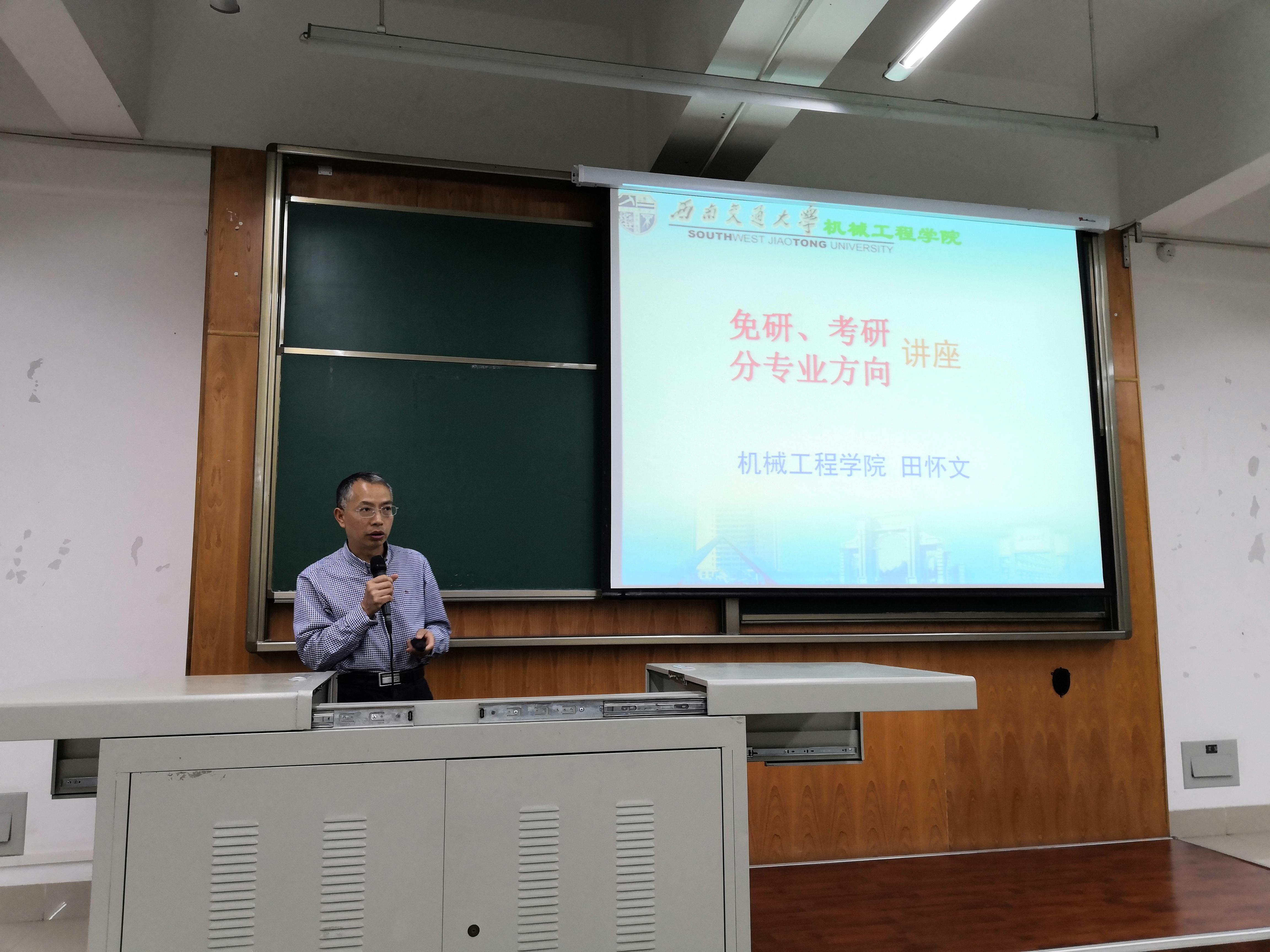 介绍会共有三个流程。大会开始时,公司副经理田怀文教授分别为公司机械与车辆的员工介绍了推免研究生工作细则,并对该细则的内容进行了详细地阐释,解说了选方向细则、相关评判标准及注意事项。田教授热情洋溢的讲话,为即将面对保研、考研问题的2016级员工解开了此方面的疑惑。