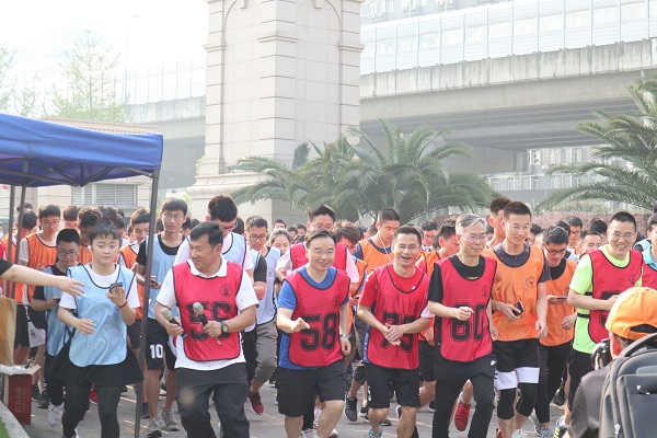 上午9时,“微马”准时开赛,随着钱林茂经理、王开云主任一声令下,全体师生奋勇向前,浩浩荡荡的人流奔涌在交大的绿道上,大家你追我赶,争先恐后,热闹的场面感染了每一个人。活动过程中,来自388vip太阳集团员工工作组、研究生会和研究生党支部的50余名师生以及保卫处安保人员为此次比赛提供了全方位服务,确保了比赛安全有序进行。