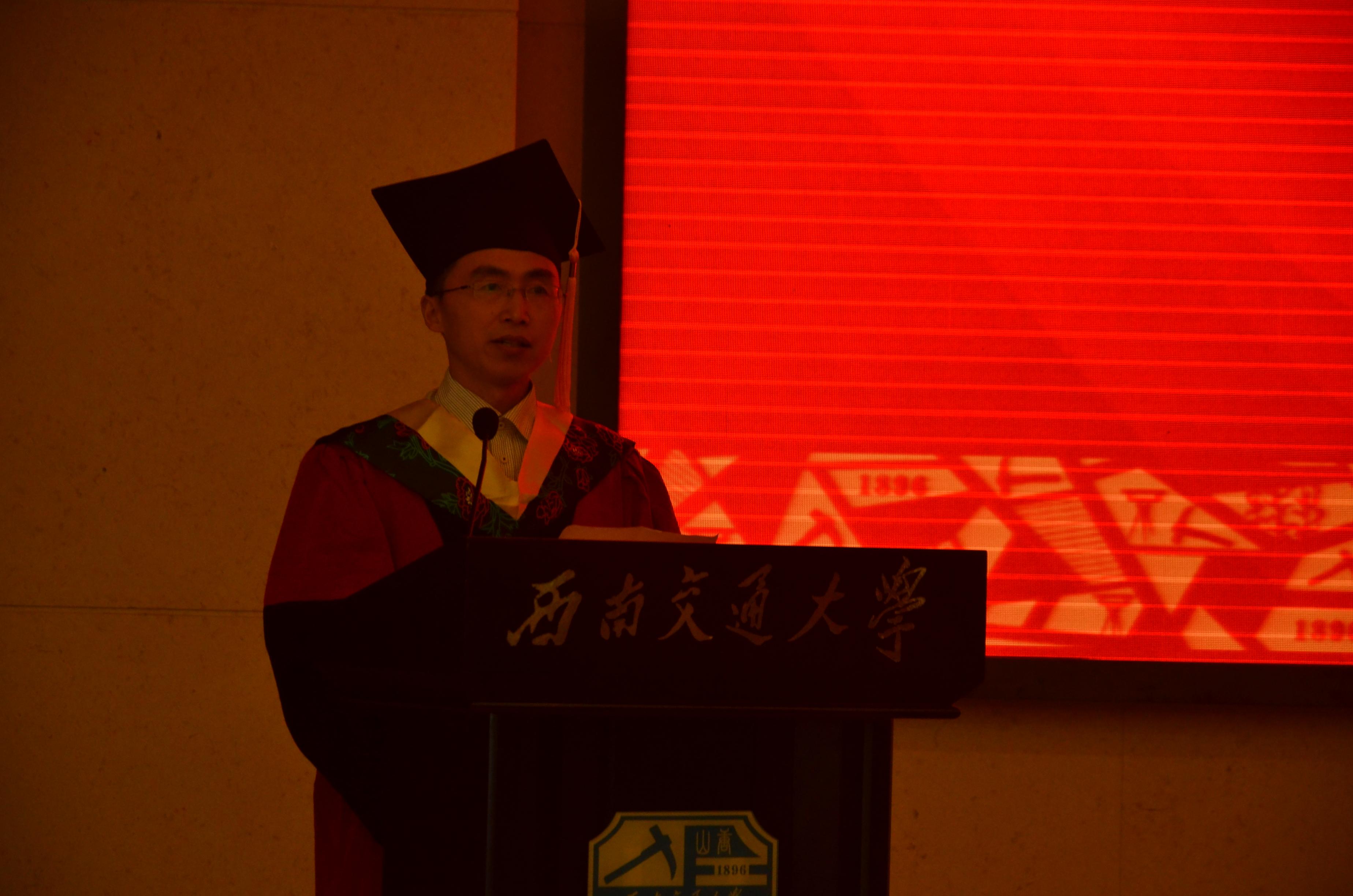 6月23日下午2:00,388vip太阳集团在峨眉校区扬华讲堂举行2019届本科生毕业典礼暨学位授位仪式。机械公司党委书记董大伟、副书记徐嘉宁,副经理曾东红、副经理兼交控系主任田怀文,交控系常务副主任冯鉴,交控系副主任曾祥光,教师代表、辅导员代表和全体2019届305名本科毕业生参加典礼。典礼由机械公司党委副书记孟凡春主持。