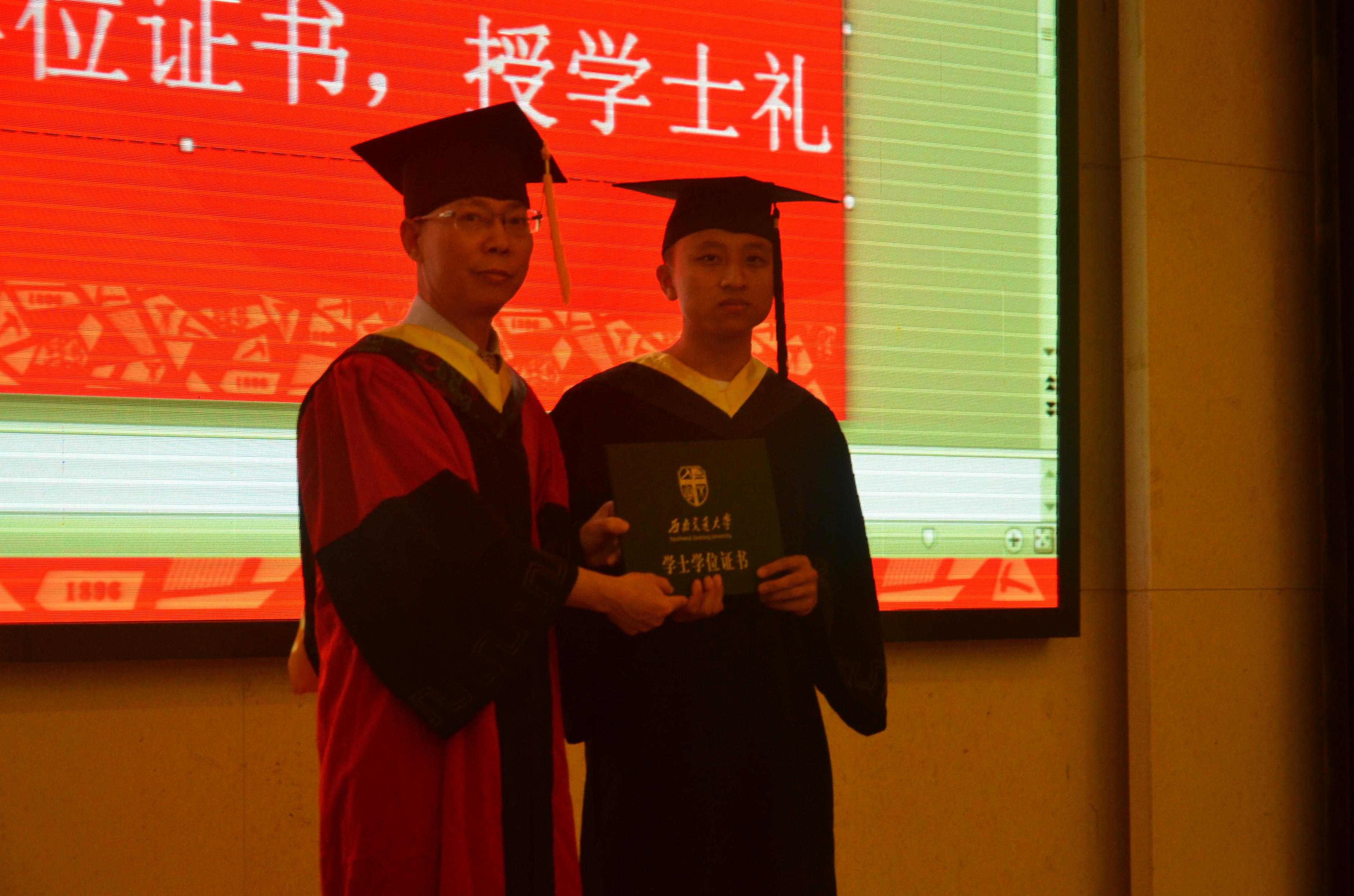 接下来,机械公司董大伟教授为全体毕业生颁发学位证书,并授学士礼。一次次亲切的握手,四方帽上的流苏一次次从右至左,一次次合影留念,无不体现公司对毕业生的关怀与祝福。