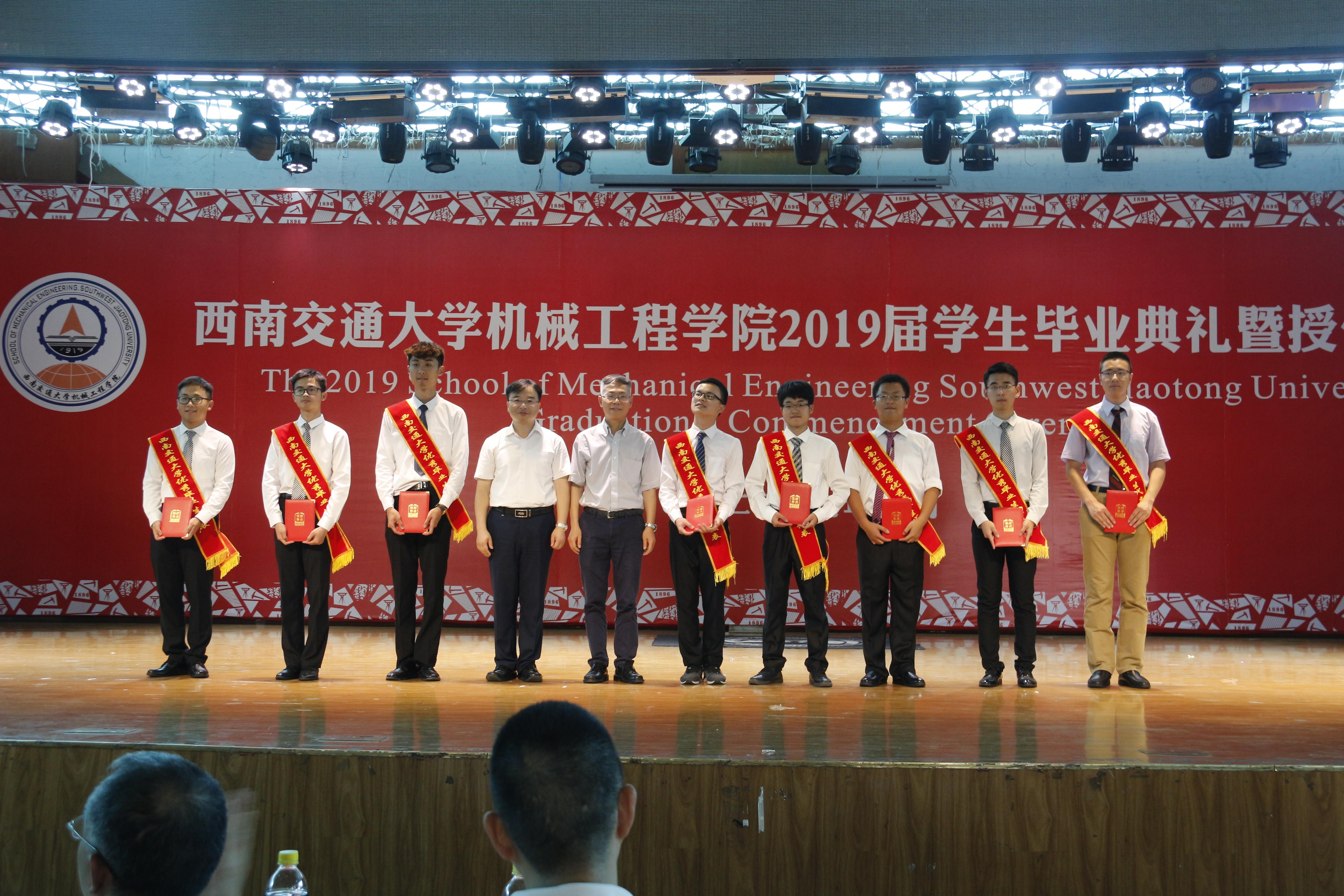 典礼在恢宏的国歌声中正式拉开了序幕,全体领导、老师与同学们激情唱响国歌后,党委书记董大伟宣读了2019届优秀毕业生名单,其中省级优秀毕业生9名,校级优秀毕业生69名。董书记对这些精励求学、踏实刻苦的优秀毕业生表示了高度的赞扬与衷心的祝贺。在一片掌声之中,由董大伟书记和钱林茂经理为省级优秀毕业生代表进行颁奖,田怀文副经理、班导师代表潘亚嘉、周斌为校级优秀毕业生代表颁奖。