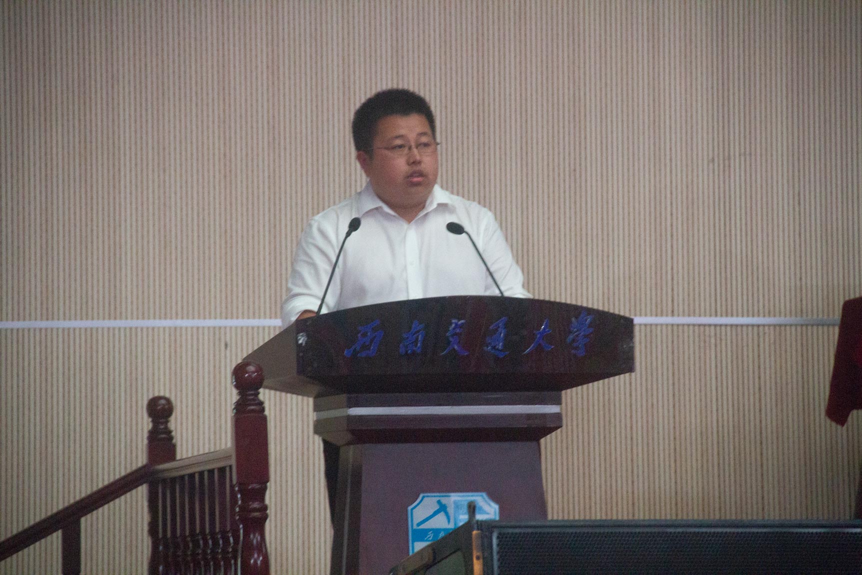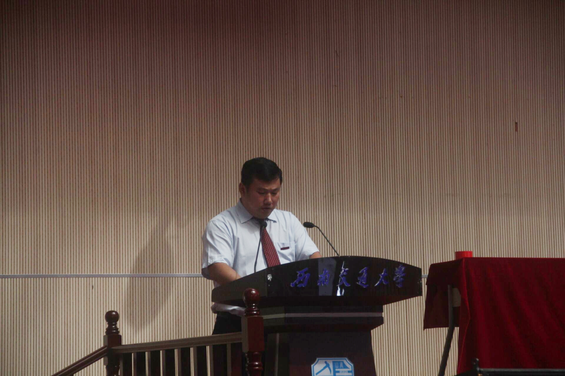 第六阶段,杨怀银辅导员发言。杨老师首先祝贺同学们来到西南交大机械公司的大家庭,提出“辅导员愿成为新生的充电宝,成为新生的冷水盆”的暖心话语。杨老师又说:“辅导员会在同学们受挫时坚定勇气,在同学们得意忘形时泼冷水。希望你们能够开启努力、纯真、奋进、善良的老员工活。”