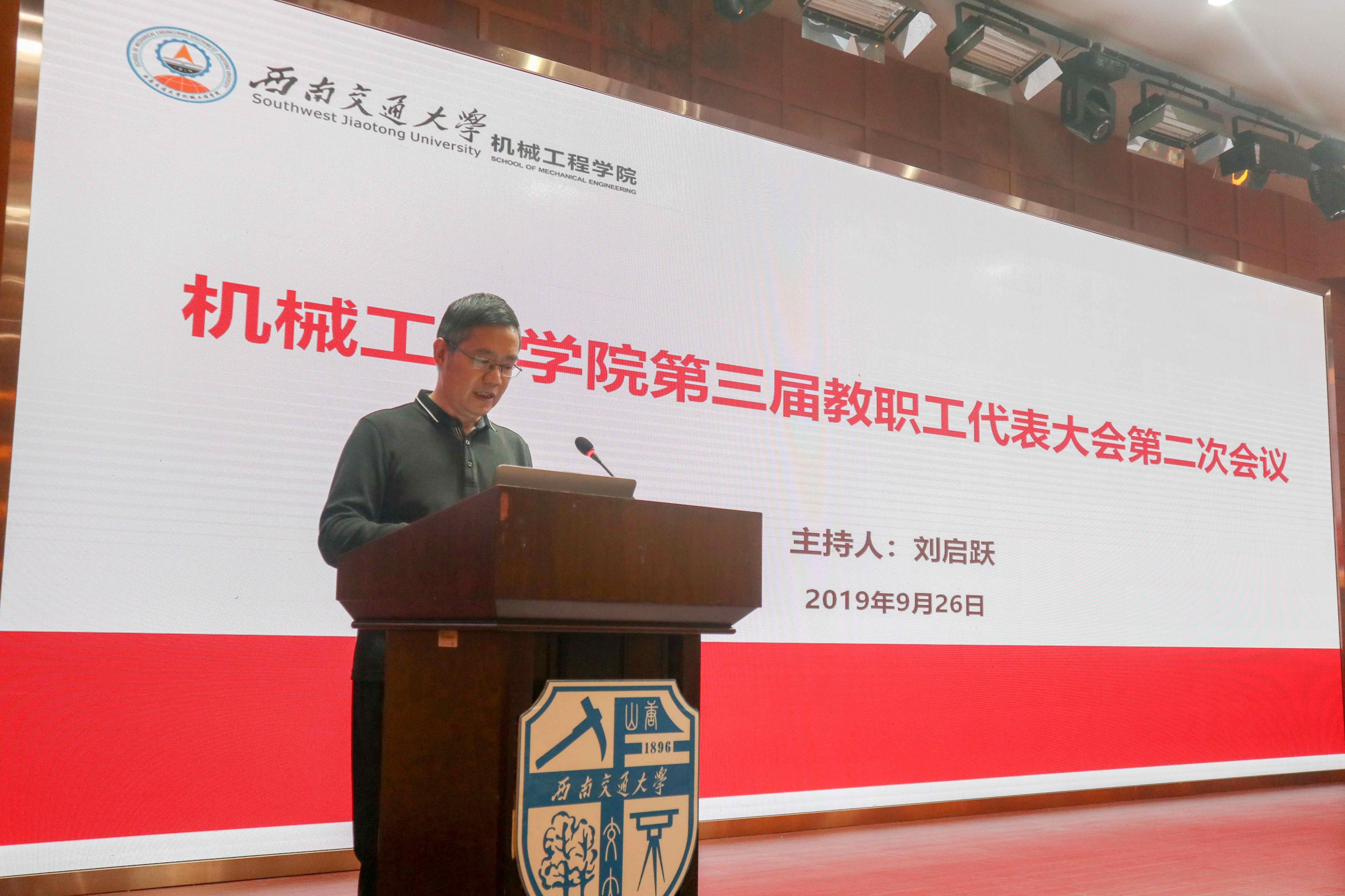 2019年9月26日下午,388vip太阳集团第三届教职工代表大会第二次会议在九里校区国际会议厅成功召开。388vip太阳集团第三届教职工代表,及公司非教职工代表的党政领导成员列席本次会议,大会由刘启跃教授主持。