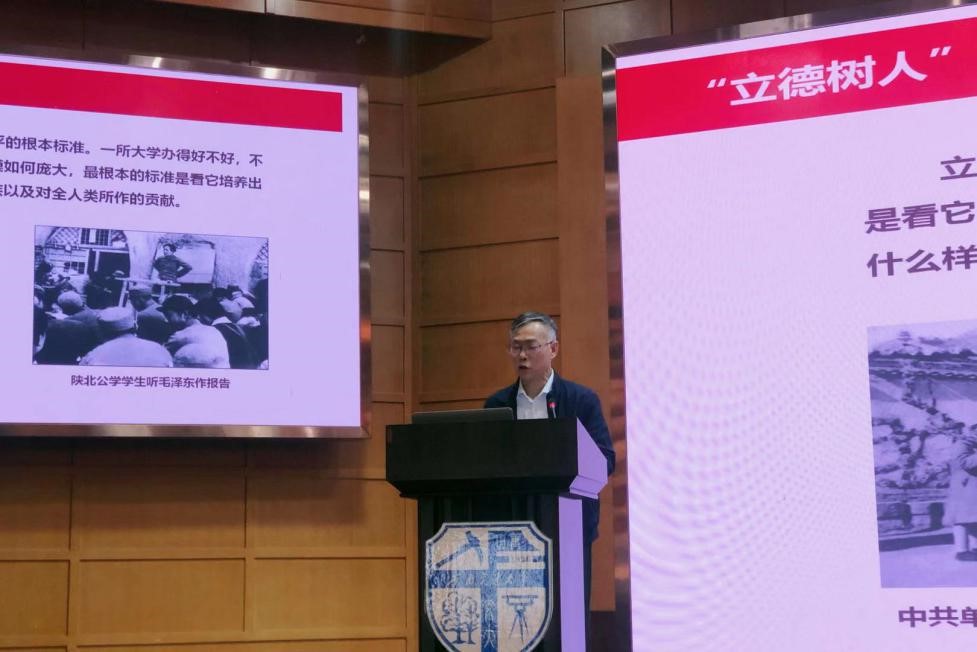 董书记从“‘立德树人’理论渊源及发展”和“努力构建公司新时代‘大思政’育人工作”两方面发表了讲话。首先,董书记引经据典回顾了“立德树人”的含义,阐明立德树人是衡量一所高校办学水平的根本标准。他着重提到延安的“山沟沟”里创办的陕北公学等一批公司在新中国的高等教育史上留下了浓墨重彩的一笔,就是因为它们为党和人民培养了一大批优秀人才。随后,董书记提到党的十九大前召开的全国高校思想政治工作会议,要把立德树人作为高校的根本任务落到实处,进一步做好高校青年员工的思想政治教育工作。他说,“中国共产党人的初心和使命,就是为中国人民谋幸福,为中华民族谋复兴。作为高校教师,为社会主义事业培养合格的建设者和接班人、为中华民族的伟大复兴输送更多高水平、高素质的优秀人才是我们工作的初心,更是我们应当为之奋斗终生的光荣使命和艰巨任务”。他强调高校思想政治工作必须围绕立德树人这一根本任务,树立和坚持大思政工作理念,积极建构大思政工作格局,形成大思政的环境与合力,真正实现全员育人、全程育人、全方位育人。