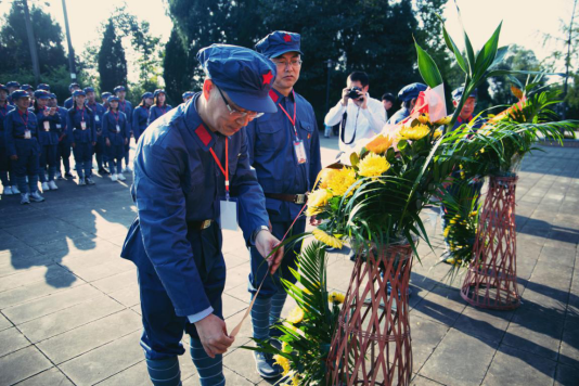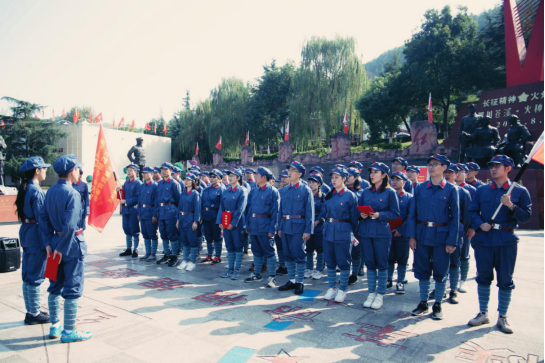19日上午8点30分,全体成员乘车前往阆中市红军烈士纪念园参观学习。在乘车途中由带队老师带领各位师生朗读爱国诗歌,弘扬爱国精神。阆中是川陕苏区的重要组成部分,也是红四方面军长征重要出发地之一。1933年至1935年,红四方面军在阆中转战3年,2.3万多名阆中优秀儿女参加了红军,在册牺牲的红军烈士有7790名,共诞生了9位将军、76位省军级干部。为纪念红军和英烈,阆中市委市政府于1996年修建了红军烈士纪念园。在红军烈士纪念园中,土木工程公司党委书记刘学毅和机械工程公司党委副书记程军的带领全体学员进行入学宣誓,接受班旗。并由当地工作人员带领,参观和了解了红四方面军在阆中浴血奋战的史实和几位阆中籍将军的英勇事迹,学习了革命先驱矢志不渝,坚定理想信念不动摇的伟大精神。随后,由刘书记和程书记带领全体成员重温入党誓词。最后,为表达对革命先烈的缅怀,四位老师代表向革命先烈敬献花篮,全体师生向革命烈士鞠躬默哀。