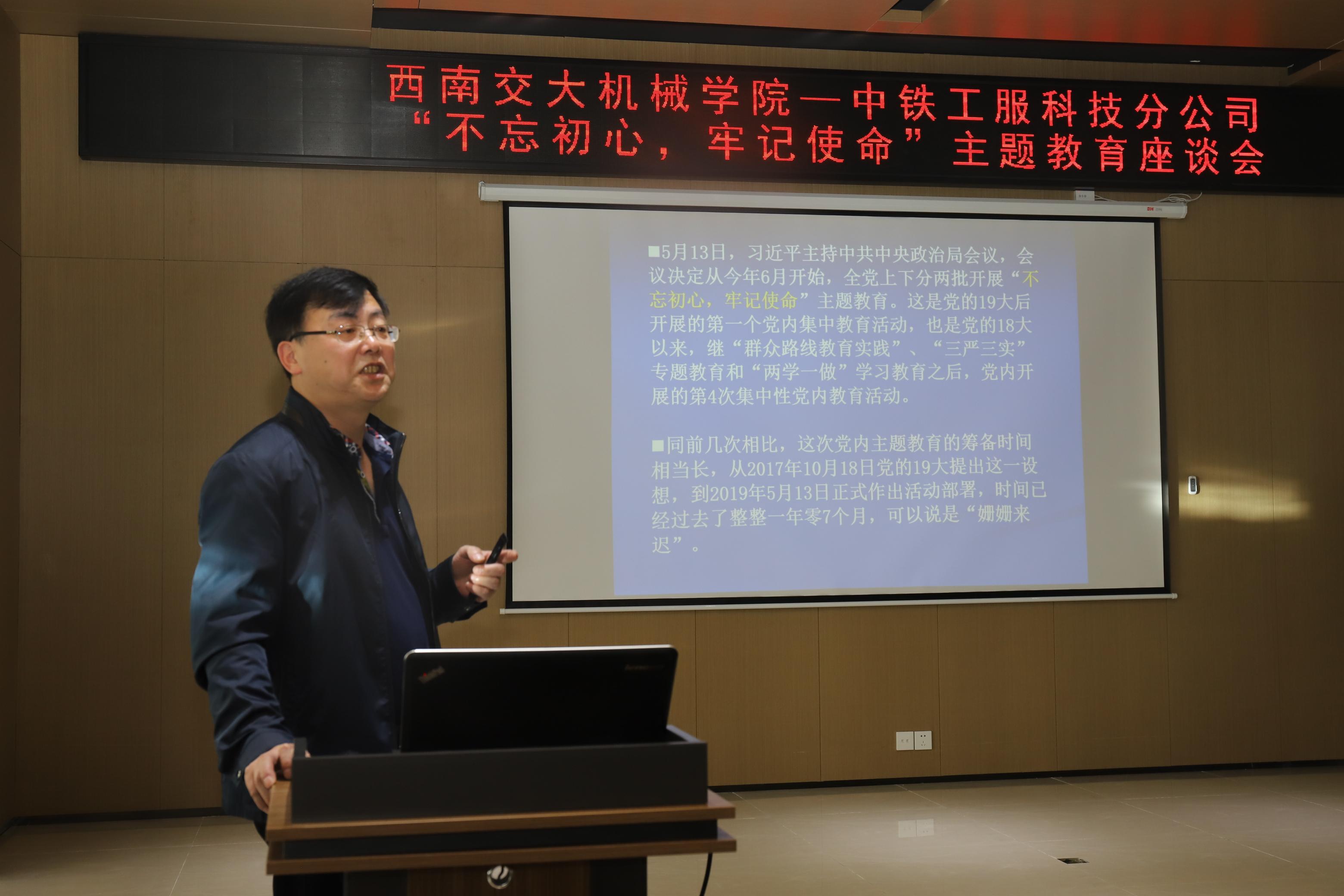 科技分公司党支部书记、总经理段文军围绕 “不忘初心、牢记使命”这一主题,从政治建设、抓好思想建党、基层党组织建设、坚持党风廉政建设、挖掘群团合力作用等方面介绍了中铁工服党建工作开展情况。