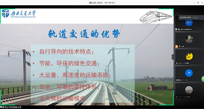 随后,机车车辆工程系的李芾老师、黄运华老师为同学们详细介绍了城市轨道交通车辆、机车工程、铁道车辆三个专业方向的具体内容。两位老师从轨道交通装备的发展概括谈起,对轨道车辆专业方向进行了简要概述,同时也对同学们今后的就业方向及发展前景做了介绍。