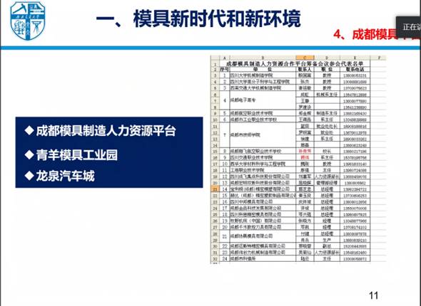 随后开始介绍的是模具设计及制造专业的谢延敏老师。他的讲解内容主要分为模具的时代和新环境、专业的设置和硬件设备、模具的应用和科研以及就业情况四大部分。谢老师还为同学们简单地分析了当今模具制造专业发展的国际形势。