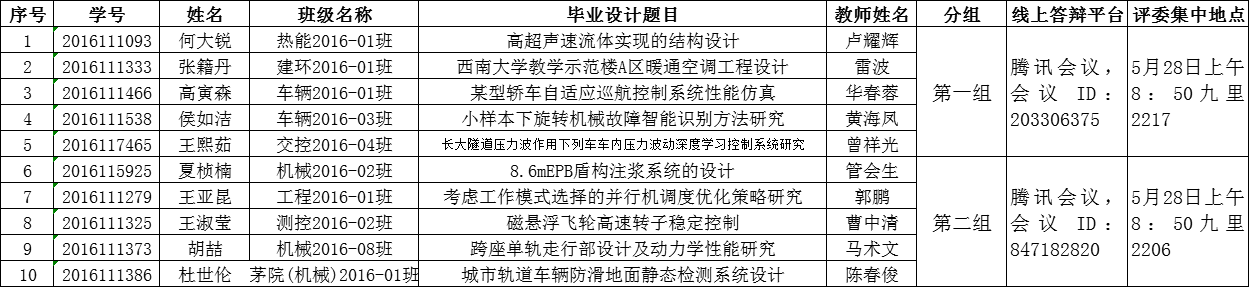 各教研室完成答辩后,请于6月5日之前在教务网上提交成绩;机械、车辆专业请于6月5日之前将答辩成绩发送至jxbkjw@swjtu.edu.cn,公司将统一提交成绩。