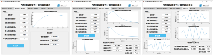 回题答:在做毕业论文的过程中,我查阅了很多资料和已有的一些成果。发现他们大都只停留在建模仿真阶段,并没有将仿真的结果直观的体现,而且对汽车操稳性的评价往往只关注某个试验或某两个试验,评价方法不是很全面。我的毕业设计弥补了这一点不足之处,不仅通过Matlab/simulink进行了四个试验的仿真,而且通过APP-Designer建立了图形用户交互界面,使仿真结果通过某些特征物理量或分数得到了直观的体现。