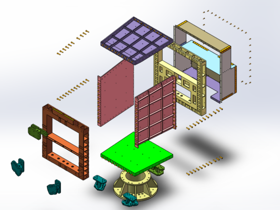 2.完成了主支撑结构的三维建模,确定了主支撑结构各部分采用的材料。