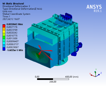 (4)是否满足使用要求分析:光学元件的形面精度能否满足要求;结构的动态刚度和静态刚度能否达到使用要求。