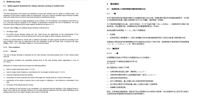②Twist test rig and flat test track(在扭曲试验台和在没有轨道倾斜度的曲线区段进行试验);