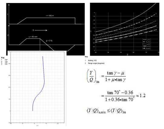 回生答:我认为不大,是正常的,因为我这里的仿真是根据EN14363:2005国际标准规定的极限线路情况进行的,线路是R=150m的S型轨道,并在过渡区采用的是长度30m、扭曲曲率3‰的扭曲轨道,脱轨系数较大是正常的,但并没有超过标准规定的极限脱轨系数。我之前也做了常规线路情况(R=400m)的仿真分析,它的脱轨系数大约在0.4-0.5之间。谢谢老师!