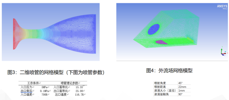 在研究外流场的同时,对多相流模型的研究也是本次毕业设计的一个重要研究部分,除了喷管外流场的基本参数外,液滴的接触角、大小、温度以及液滴的数目是否会对喷管的喷射效果带来影响,液滴破碎混合之后是否仍然具有较高速度被吹出等都是影响喷管喷射效果的关键因素。