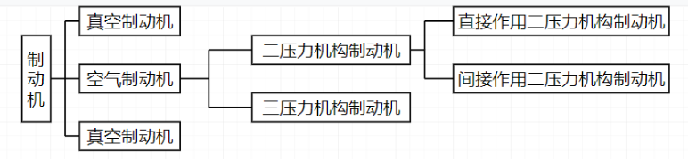 空气制动机按参与主活塞平衡的压力多少可分为二压力机构和三压力机构两种,按列车管压强和主活塞动作是否直接控制制动缸的制动与缓解,又有直接作用和间接作用之分。图5为制动机的分类图。我国铁路货物列车编组与美国比较相似,编组较长,适合采用两压力机构制动机,我国的103、120型空气制动机均属于两压力机构制动机。
