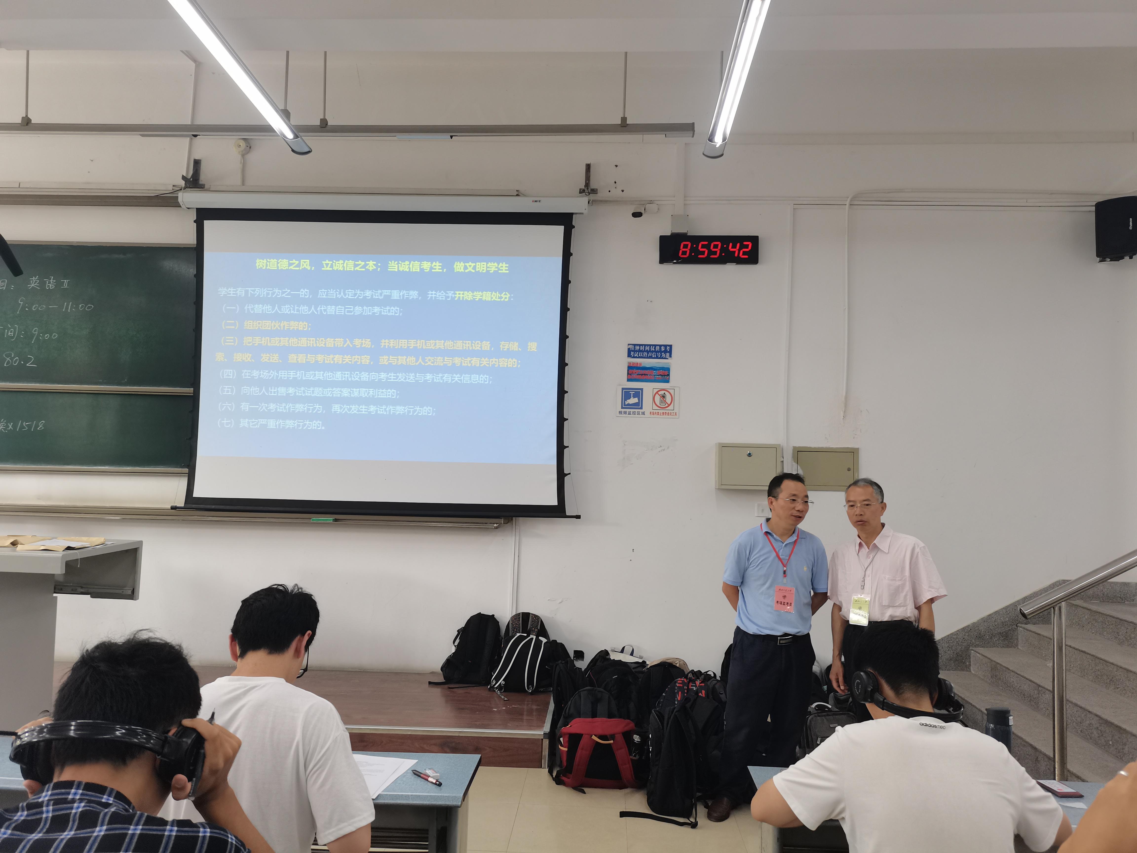 从巡视情况看,除一名教师因事请假由他人替监考外,其他监考均由教师本人完成。整个考试过程有序,监考老师工作严谨,认真履行职责;员工严格遵守考试纪律,考场秩序良好。