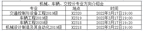 专业介绍会后,按班级填写《388vip太阳集团专业方向选择志愿表》,并于3月28日上午10点之前将纸质表交至辅导员办公室(2019级交X2204、2020级交X2203),电子稿2019级发送至jixie2019bgs@163.com,2020级发送至jiaodajixie2020@126.com,邮件标题为机械/车辆/交控2019、2020-0*班分专业方向志愿表。