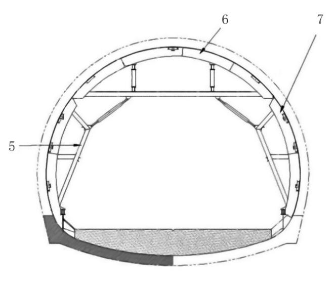 (2)根据隧道断面尺寸和工程施工要求,设计台车结构、模板和运行机构的主要参数;衬砌台车形式多样,但其结构基本相同,包括:模板总成,走行系统,顶升机构,横移机构,支撑杆件系统,自动浇筑系统以及其他附属机构;