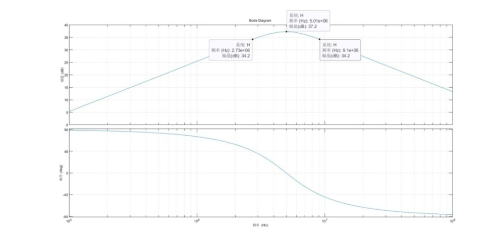 在Matlab中绘制该传递函数的幅频特性和相频特性如下图所示:
